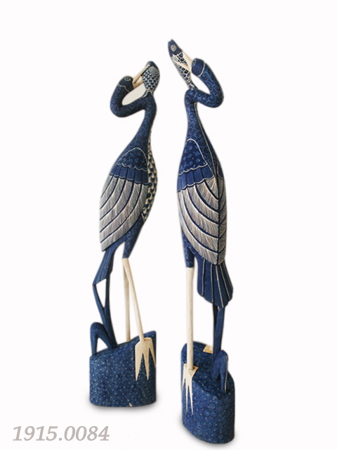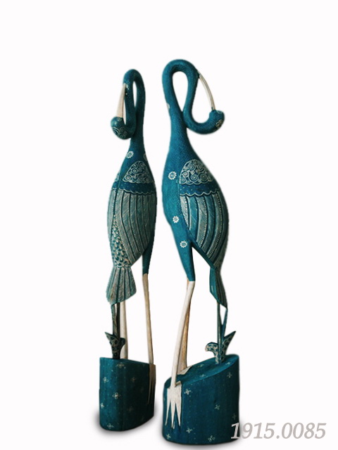 Handmade apikri Big heron statue, Sengon wood, food gathering with spread wings shape, carving technique, flower-gravel and feather motif batiked, green color.