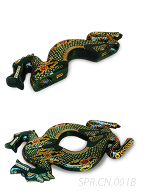 Apikri Hand made Dakon game, Sengon wood, Dragon shape, mego mendung and flower motif batiked, green and orange color, aqua lacquer coating.