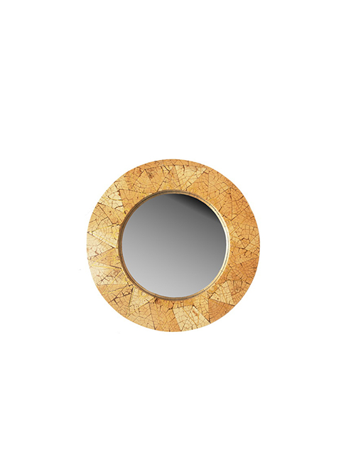 Mirror, local wood combine with coconut shell, round shape, white color with sun gold painting.
